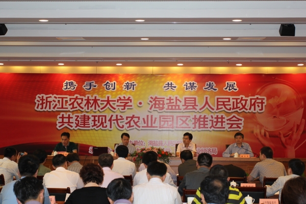 浙農林大新聞網訊 5月25日,我校與海鹽舉行共建現代農業園區推進會,雙方簽訂了《園區共建科技支撐合作協議》,并成立“校地合作辦公室”。我校合作處組織農學院、林生院的相關領導和專家參加了此次會議。