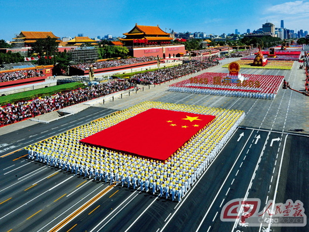 2009年10月1日,北京天安門廣場舉行國慶60周年盛大閱兵和群眾游行。這是新中國的第14次國慶閱兵,也是邁入新世紀的中國第一次舉行盛大國慶閱兵。長安街上,14個徒步方隊、30個裝備方隊和12個空中梯隊,100%中國自主研制的裝備,向世人展示了新中國60年強軍之路。十萬群眾、六十輛彩車組成了36個游行方陣,描繪出祖國大地新美的圖畫。