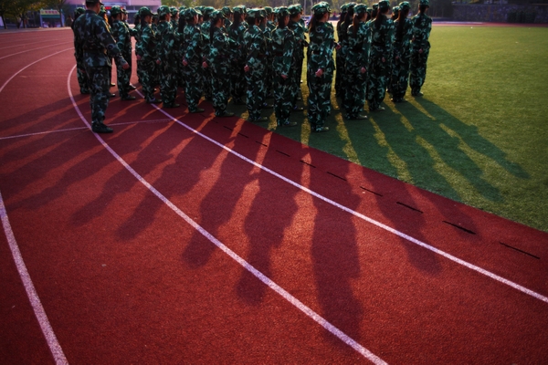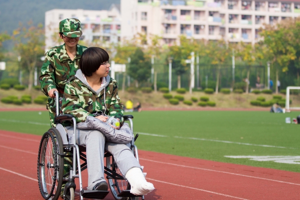 教官教我們疊“豆腐塊”被子,寢室里頗有一番軍營的味道。
