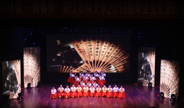 6月22日晚,由宣傳部、學工部、校團委主辦,農業與食品科學學院、動物科技學院(籌)、林業與生物技術學院承辦的“農林情 青春夢”浙江農林大學2016屆畢業生晚會在活動中心影劇院舉行。校長周國模,校黨委副書記史永安,校黨委委員、宣傳部部長胡祖吉,以及相關職能部門、二級學院負責人、2016屆畢業生們歡聚一堂,在歌舞聲中歡慶畢業。