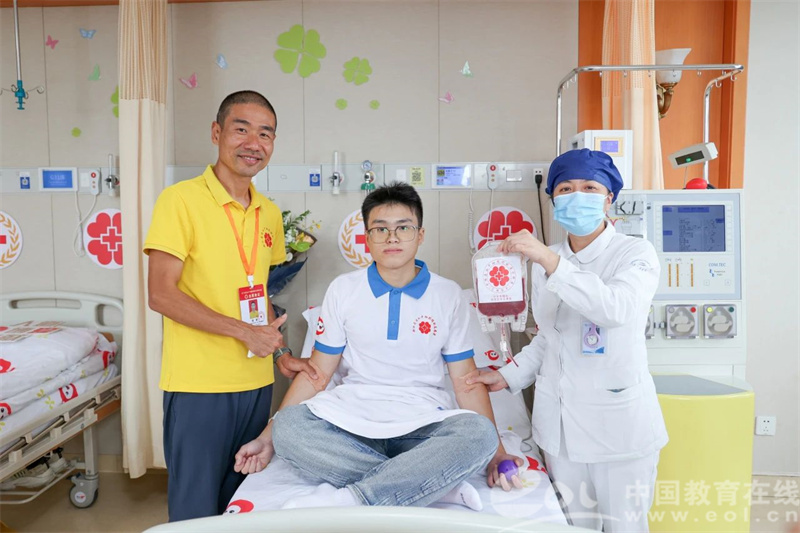 學(xué)校的老師,紅十字會(huì)、醫(yī)院的醫(yī)生護(hù)士也陪伴在余濤的身邊,“整個(gè)過(guò)程都很安心的,所有的注意事項(xiàng)工作人員都會(huì)非常細(xì)致地跟我講清楚。”余濤說(shuō),“感覺(jué)有一點(diǎn)疲憊時(shí),學(xué)校和老師都很關(guān)心我,囑咐我一定要先休息好,我覺(jué)得非常感動(dòng)。”