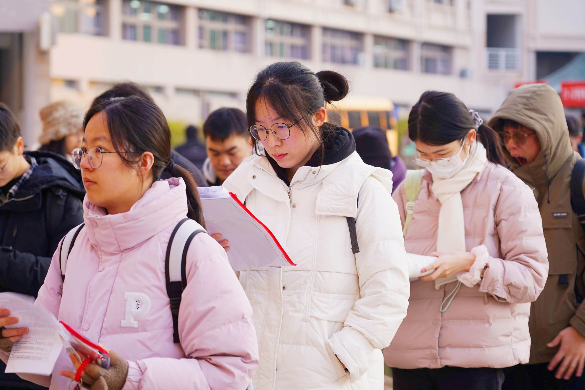 12月21日,2025年碩士研究生招生考試浙江農(nóng)林大學(xué)考點(diǎn),考生將手機(jī)寄存在考場(chǎng)外的手機(jī)存放柜后,排隊(duì)有序進(jìn)入考場(chǎng),認(rèn)真進(jìn)行答題。