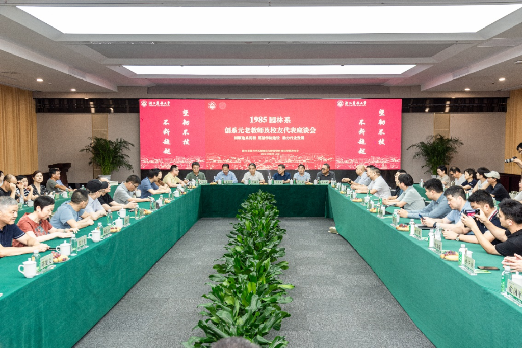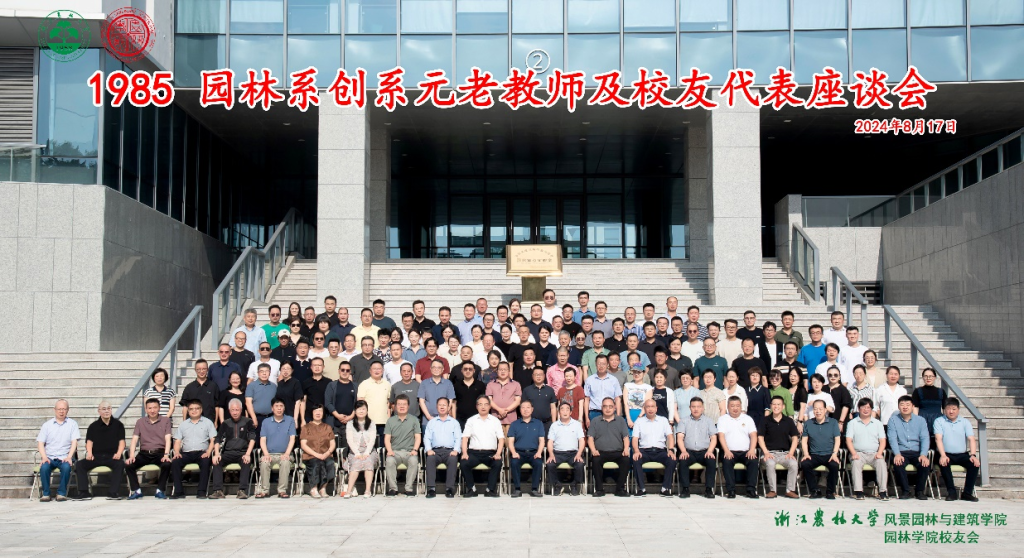 8月17日,園林學院舉行了1985年園林系創系元老教師及校友代表座談會。副校長、校友會常務副會長胡祖吉,園林系首任黨總支書記、浙農林大杭州校友會會長方志剛,創系元老教師,浙江省風景園林學會理事長施德法,原園林學院院長范義榮、包志毅,杭州市園林綠化股份有限公司董事長吳光洪、副總裁李壽仁,浙江農林大學古樹名木保護研究院副院長陳忠良、浙江神龍灣生態建設集團董事長沈鴻明等行業嘉賓,以及園林學院歷任與現任領導班子和全國各地園林學院校友近150余人齊聚一堂,共同回顧學院的光輝歷程,展望未來的發展藍圖。會議由園林學院杭州地區校友會秘書長張圣杰主持。