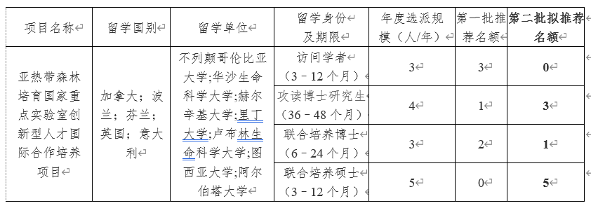 我校國家留學基金委創新型人才國際合作培養項目2023年度校內選派工作已經啟動。本年度共選派15位師生國家公派前往加拿大不列顛哥倫比亞大學、波蘭華沙生命科學大學訪學或留學。根據第一批學校推薦情況,第二批推薦類別和名額如下: