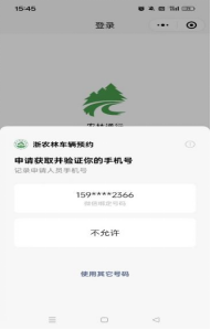 2.獲取微信授權(quán)在獲取授權(quán)的同時(shí),用戶(hù)需要勾選《浙農(nóng)林人員車(chē)輛入校須知》。