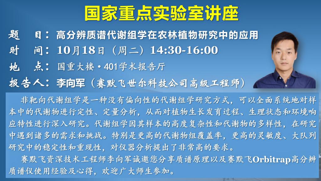 講座預告:高分辨質譜代謝組學在農林植物研究中的應用