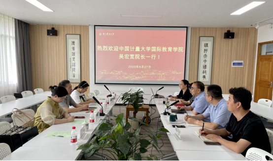 6月27日,中國計量大學國際教育學院院長吳宏寬一行來我院交流。國教學院院長趙有華以及相關人員參加座談交流。