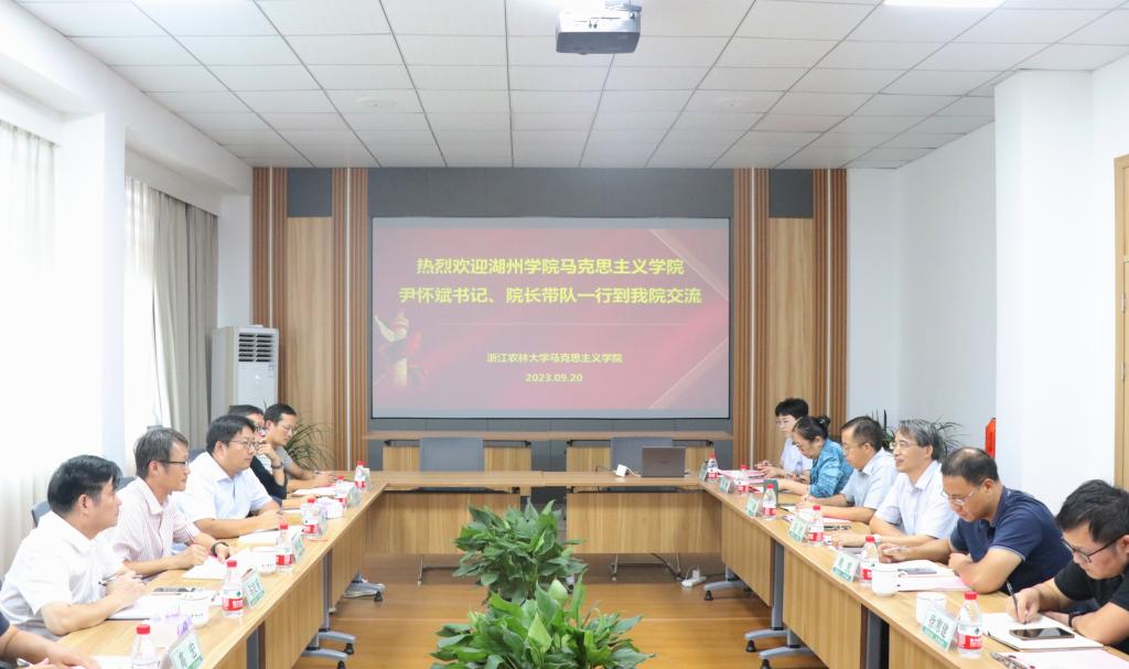9月20日,湖州學院馬克思主義學院書記、院長尹懷斌一行來馬院交流。校宣傳部相關人員、馬院領導班子和教師代表參加此次交流。