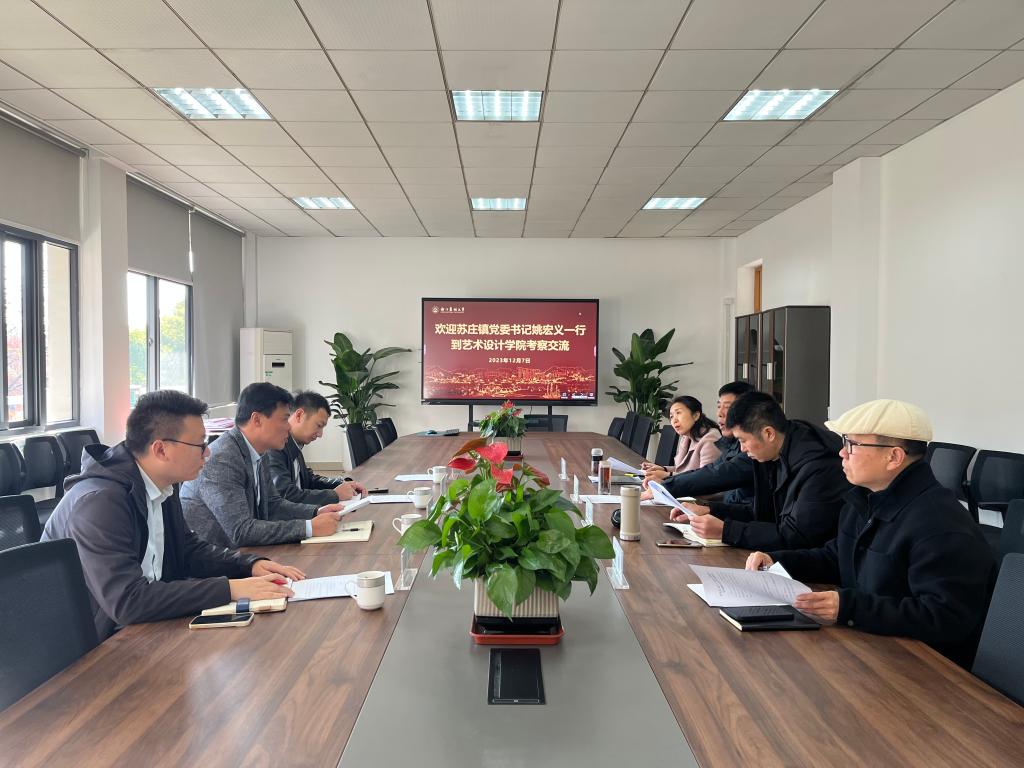 陳思宇對姚宏義一行的到來表示歡迎,并簡要介紹了藝術設計學院建設發展的基本情況。他表示學院聚焦區域產業發展,致力于服務浙江共同富裕示范區建設,學科專業優勢可與蘇莊鎮整體發展需求相結合,為雙方合作奠定了基礎。下一步將發揮學院專業優勢和科技特派員力量,為校地合作、服務鄉村振興做出貢獻,希望雙方通過努力合作結出碩果。
