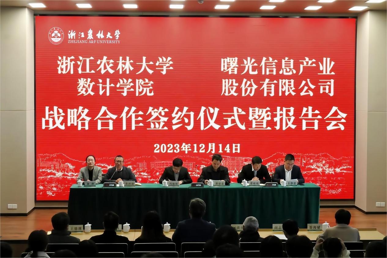 12月14日,數(shù)計(jì)學(xué)院與曙光信息產(chǎn)業(yè)股份有限公司戰(zhàn)略合作簽約儀式在學(xué)三國際報(bào)告廳舉行。中科曙光副總經(jīng)理曹明明等中科曙光高管10人,我校教務(wù)處處長郭建忠,數(shù)計(jì)學(xué)院黨政領(lǐng)導(dǎo)班子、現(xiàn)代農(nóng)林人工智能產(chǎn)業(yè)學(xué)院相關(guān)負(fù)責(zé)人出席簽約儀式。